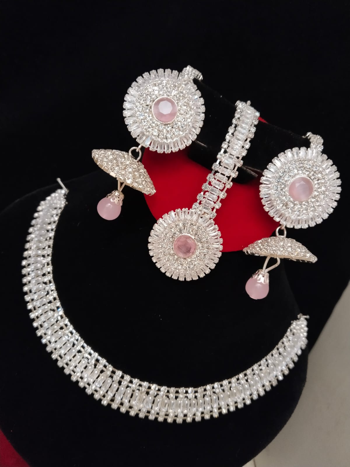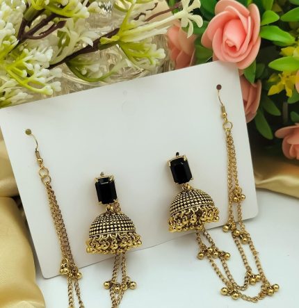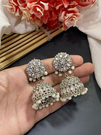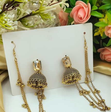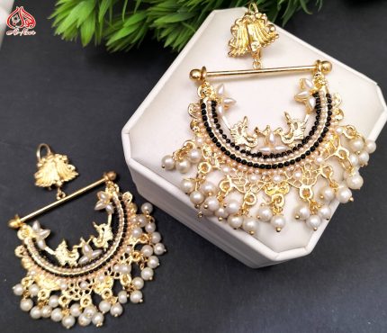 Beautiful Gold White Necklace Earring Jhoomer Jewellery Set Elegant Design