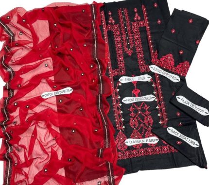 Be the first to review “Charizma 3Pc Chiffon Embroidered Trouser Shirts Dupatta Linen Unstitched Suits” Cancel reply