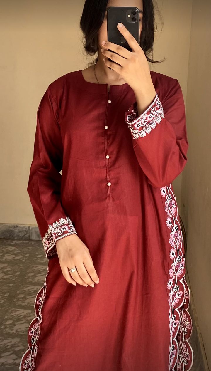 Cotton Embroidery Shirt 2pcs Trouser Beautiful Fancy Suit Different Color Available