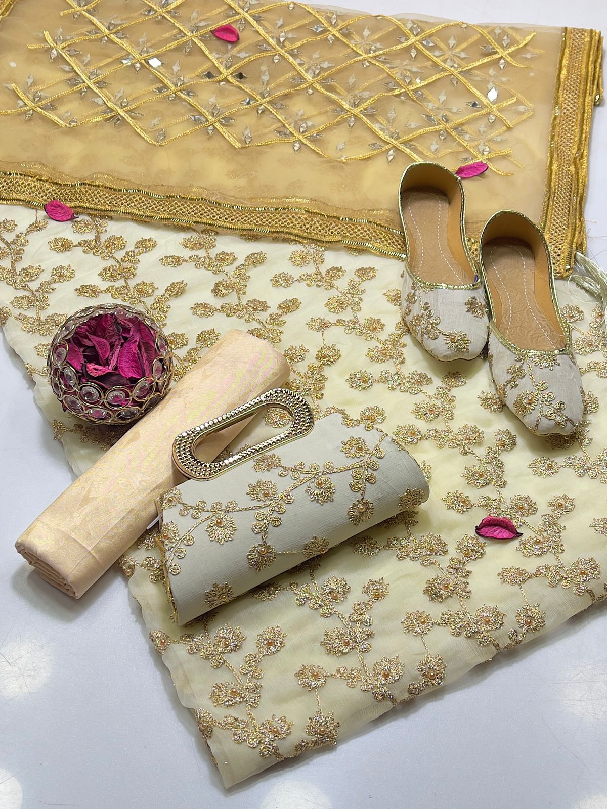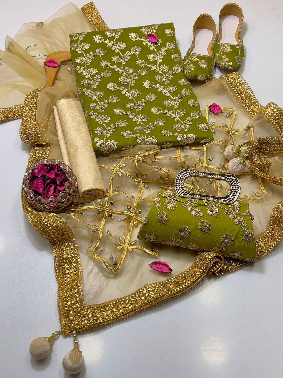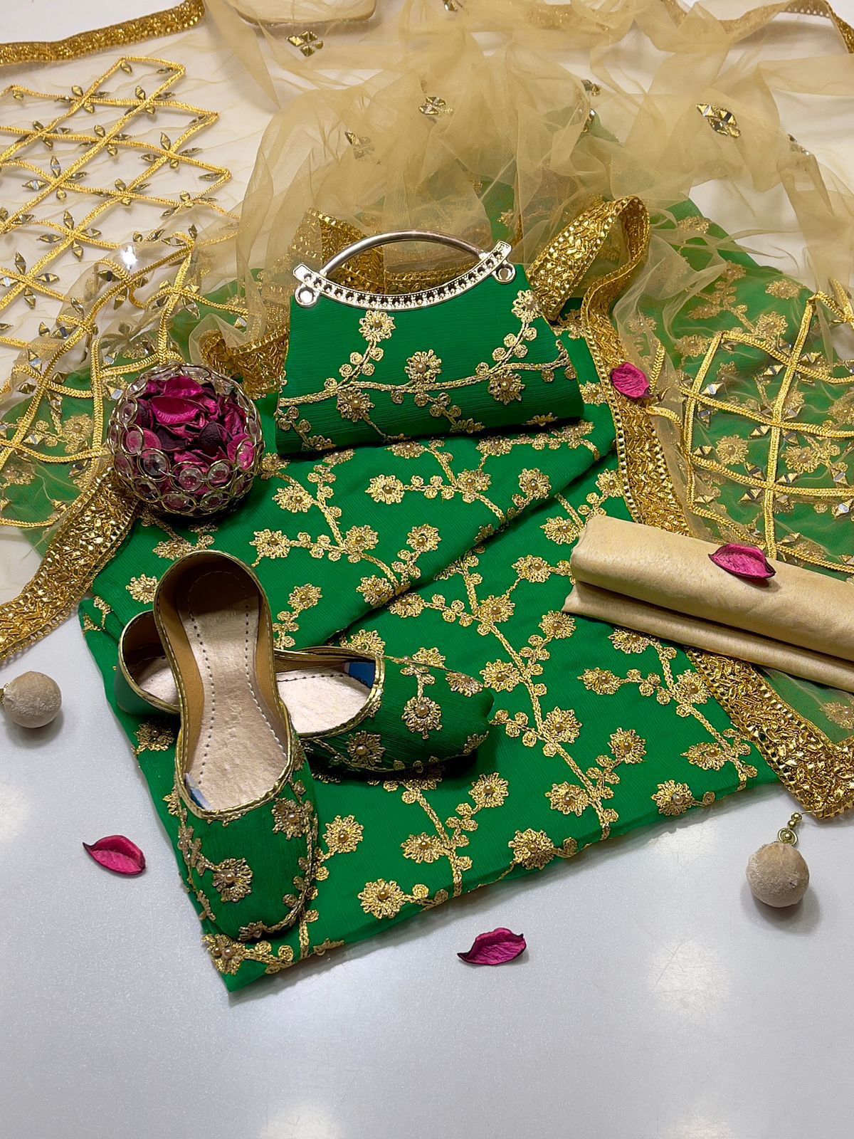 Crinkle Chiffon Fabric Embroidery Shirt 5pcs Beautiful Fancy Unstitched Suit Different Color Available