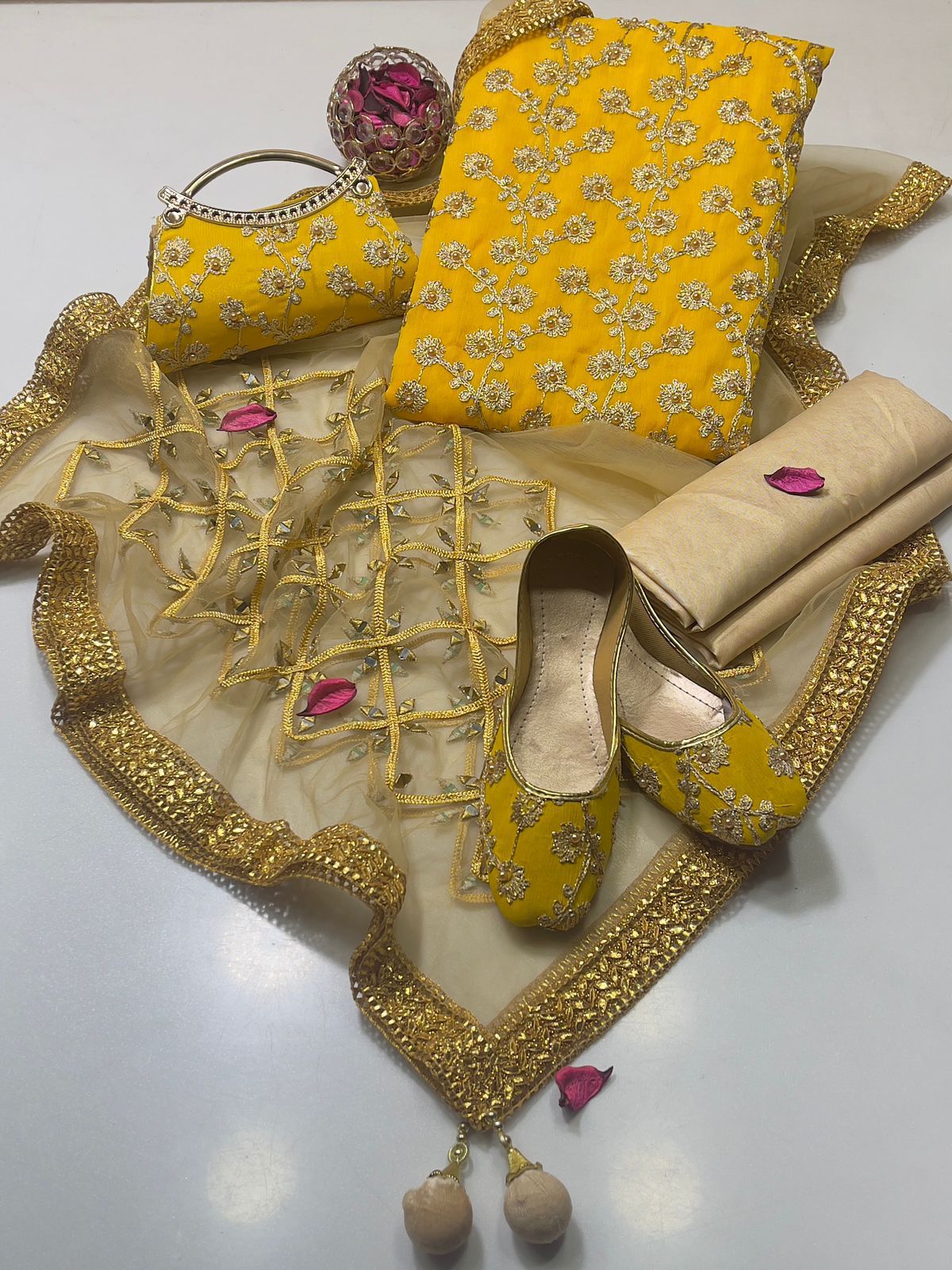– Indian net fabric dupatta with neat & beautiful handmade mirror embroidery design with 4 side border lass and tussles