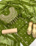 Organza Embroidery Shirt Dupatta 3pcs Khatan Silk Trouser Beautiful Fancy Suit Different Color Available