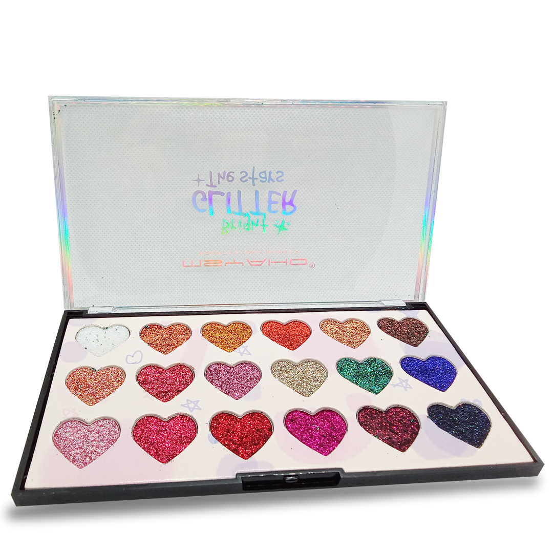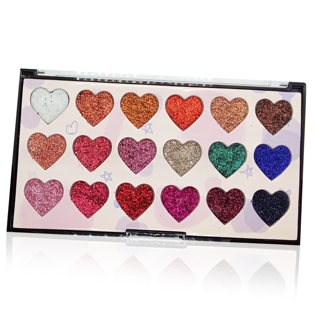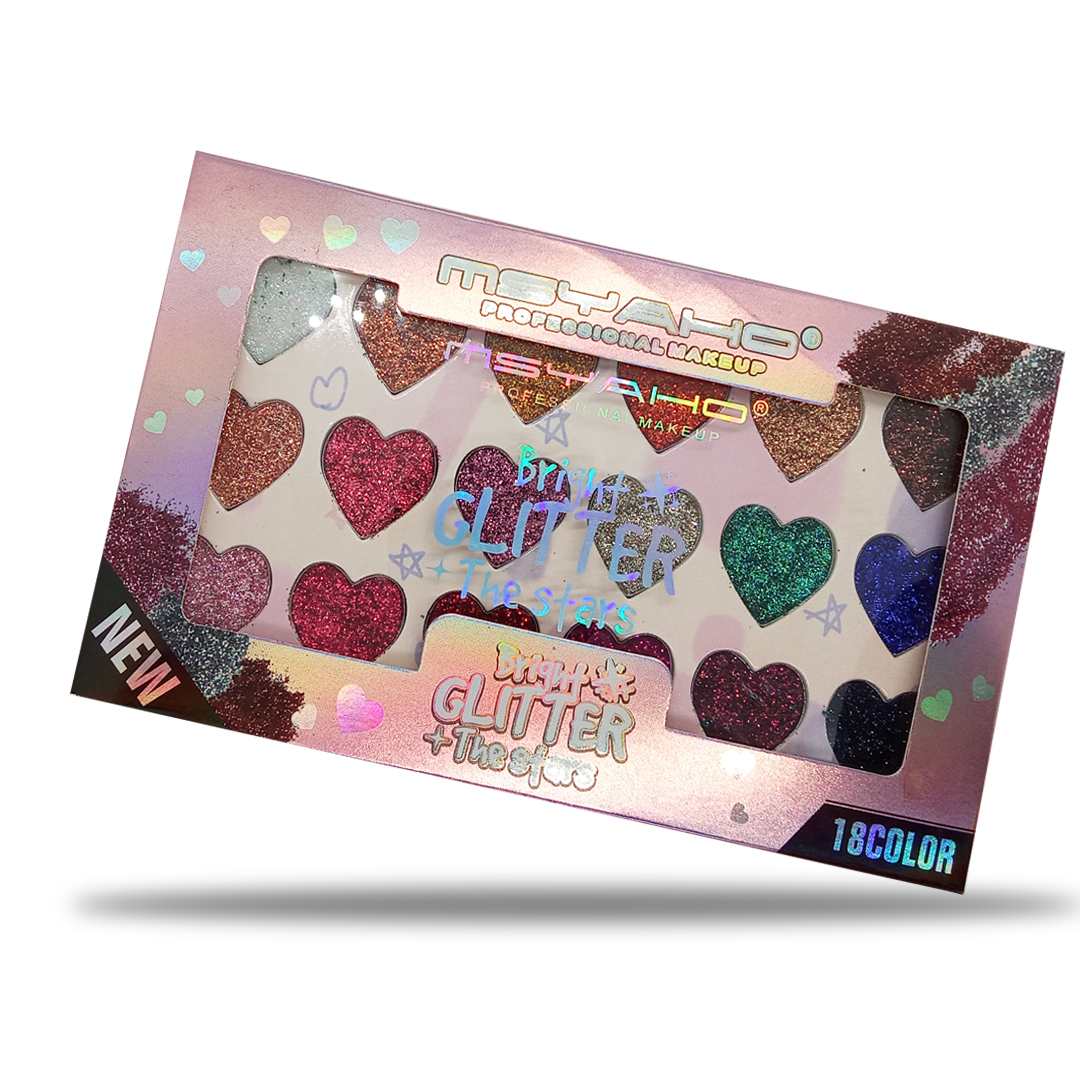 MSYAHO Women High Gloss Flash 18 Color Glitter Sequins Heart Shaped Eye Shadow Makeup Plate