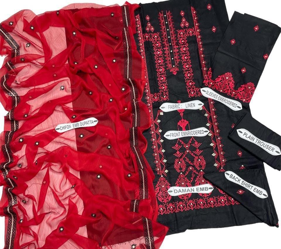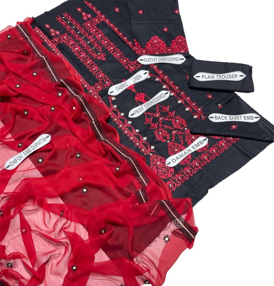 Neelam Munir 3Pc Chiffon Embroidered Trouser Shirts Dupatta Unstitched Suits
