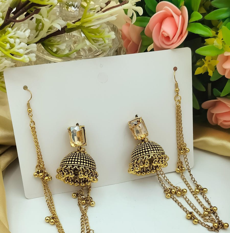 New Antique Gold Jhumki Stone Earring Jewellery Set