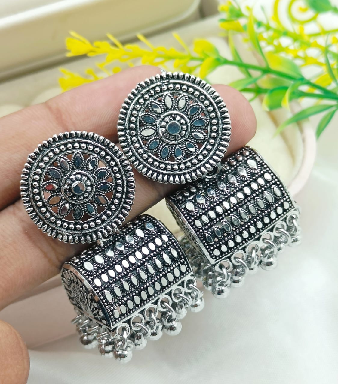 Home Jewellery New Antique Silver Black Steel Jhumki Jewellery