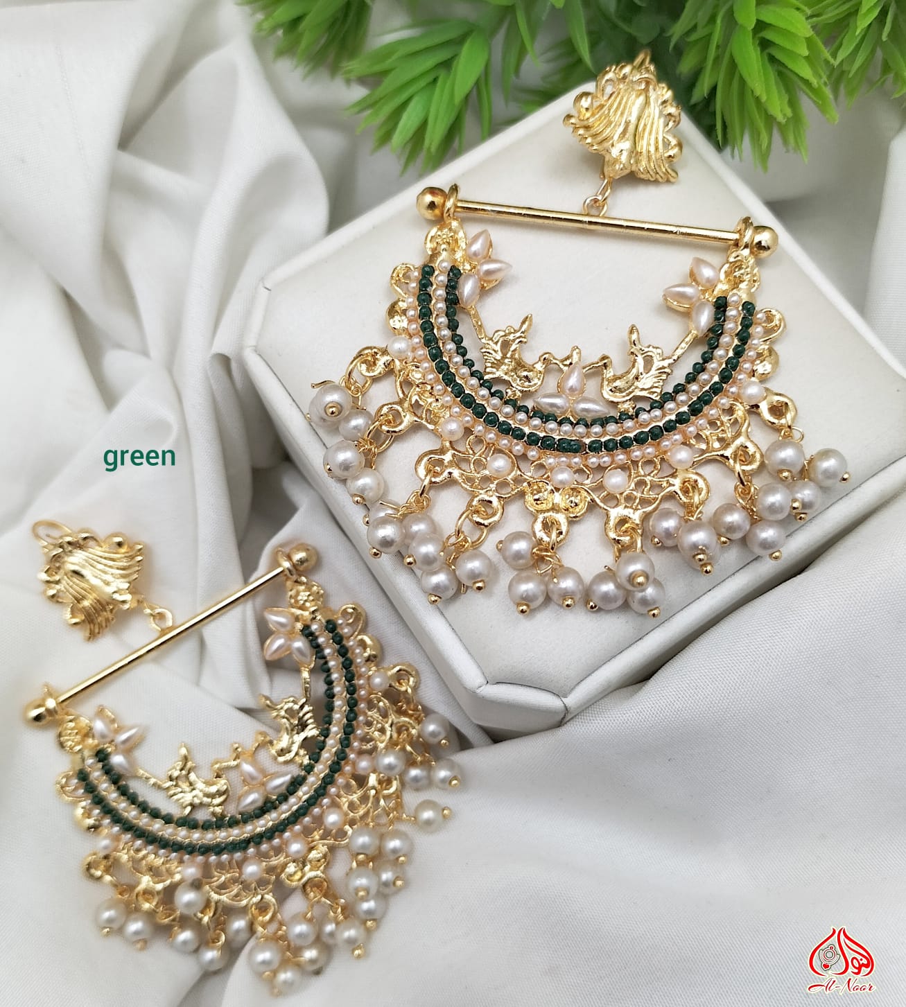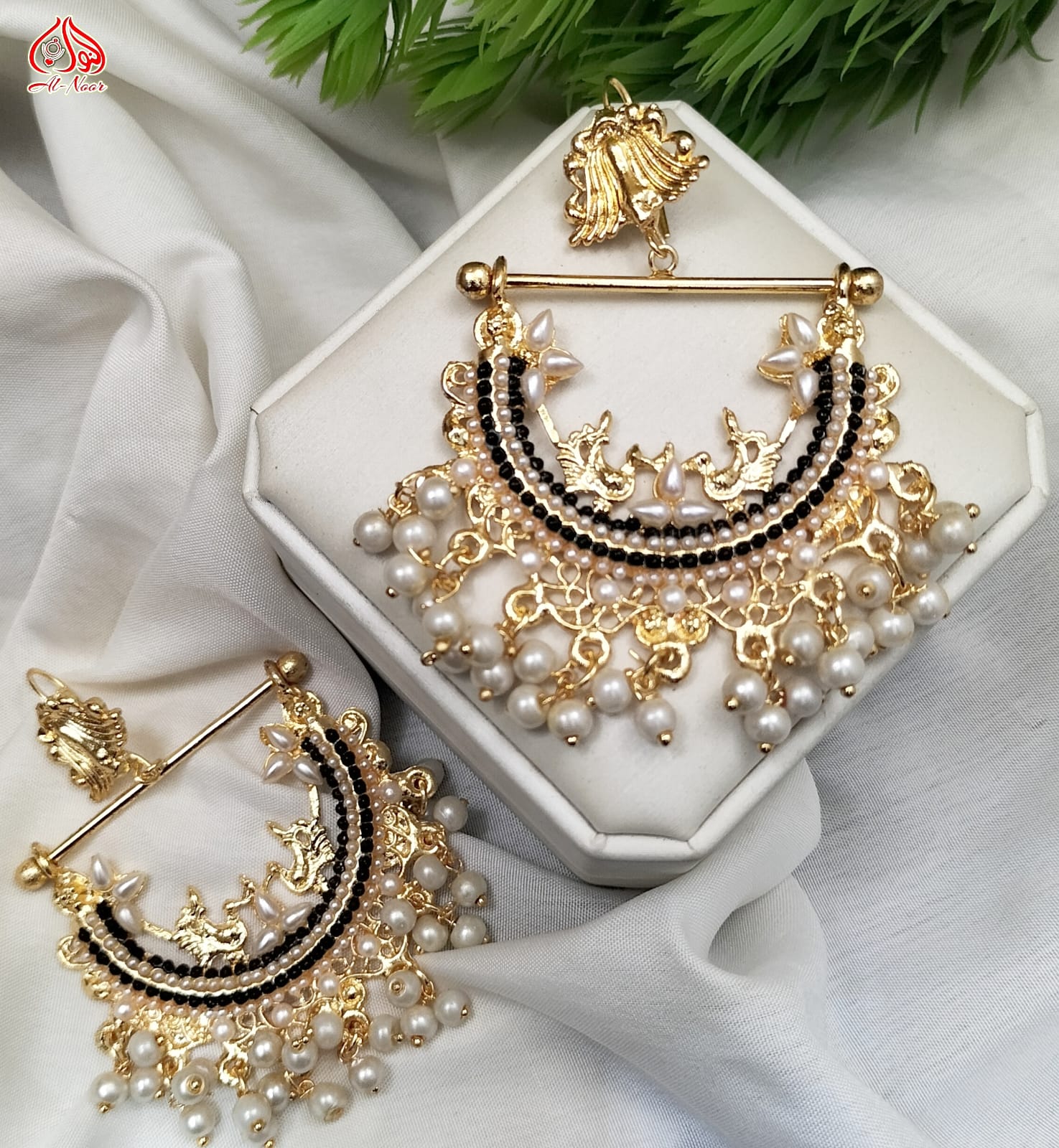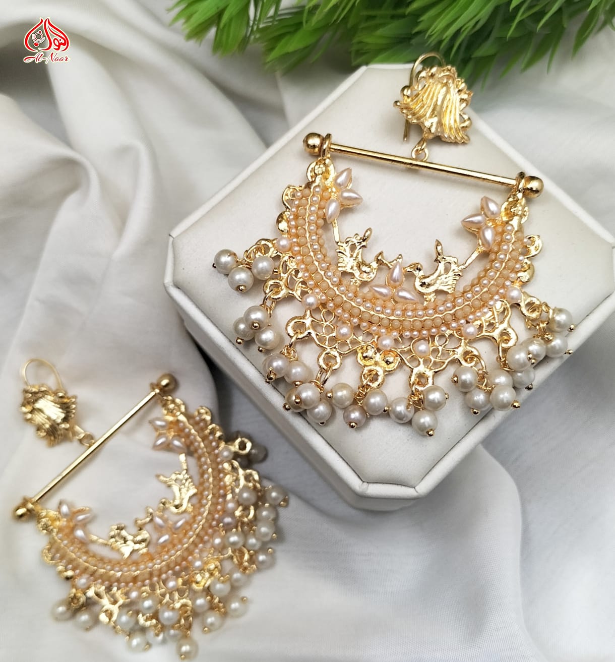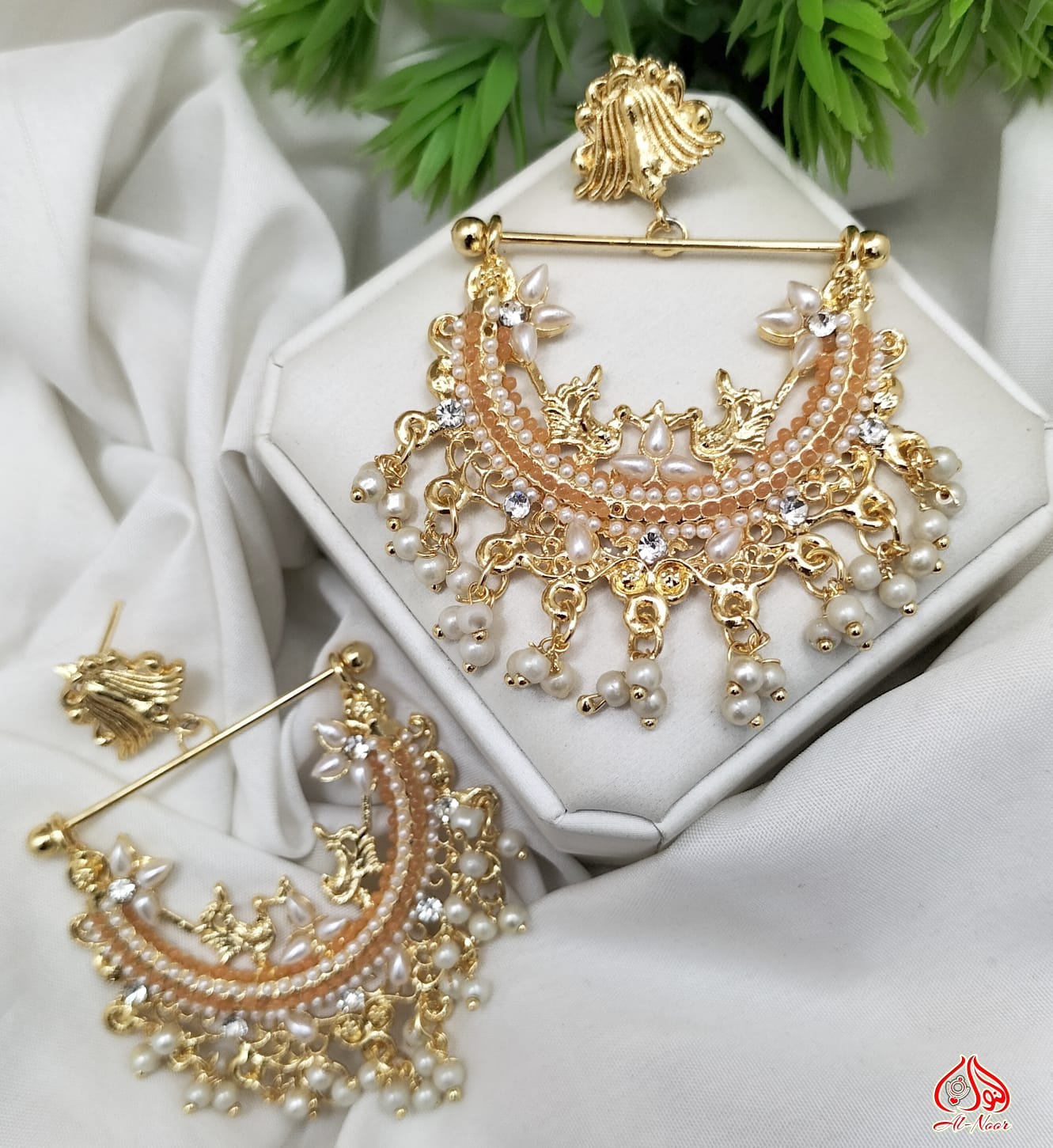 New Fancy Gold White Pearl Earring Jewellery Set
