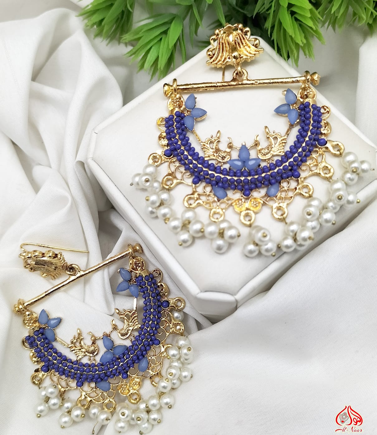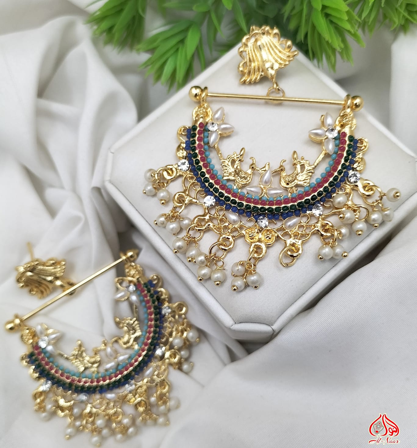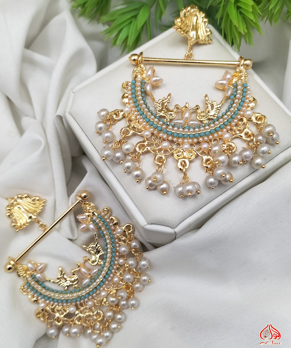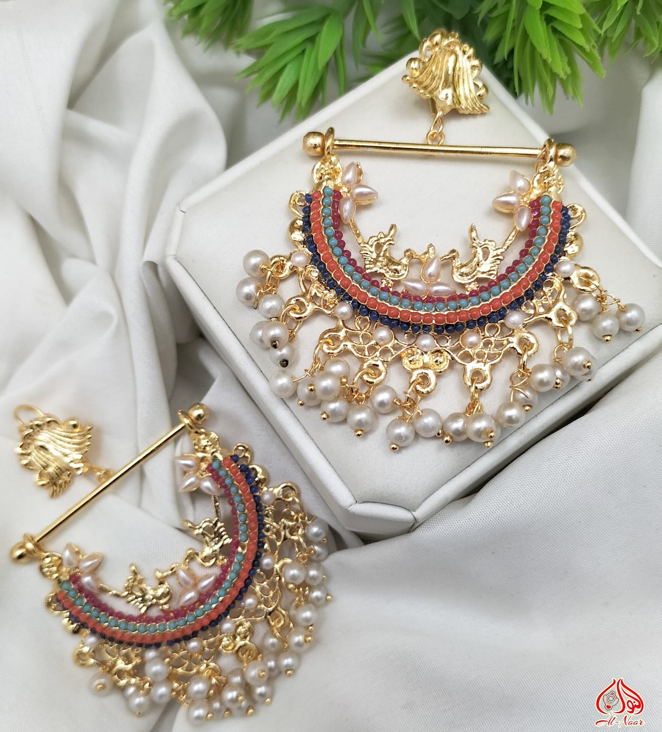 New Fancy Gold White Pearl Earring Jewellery Set