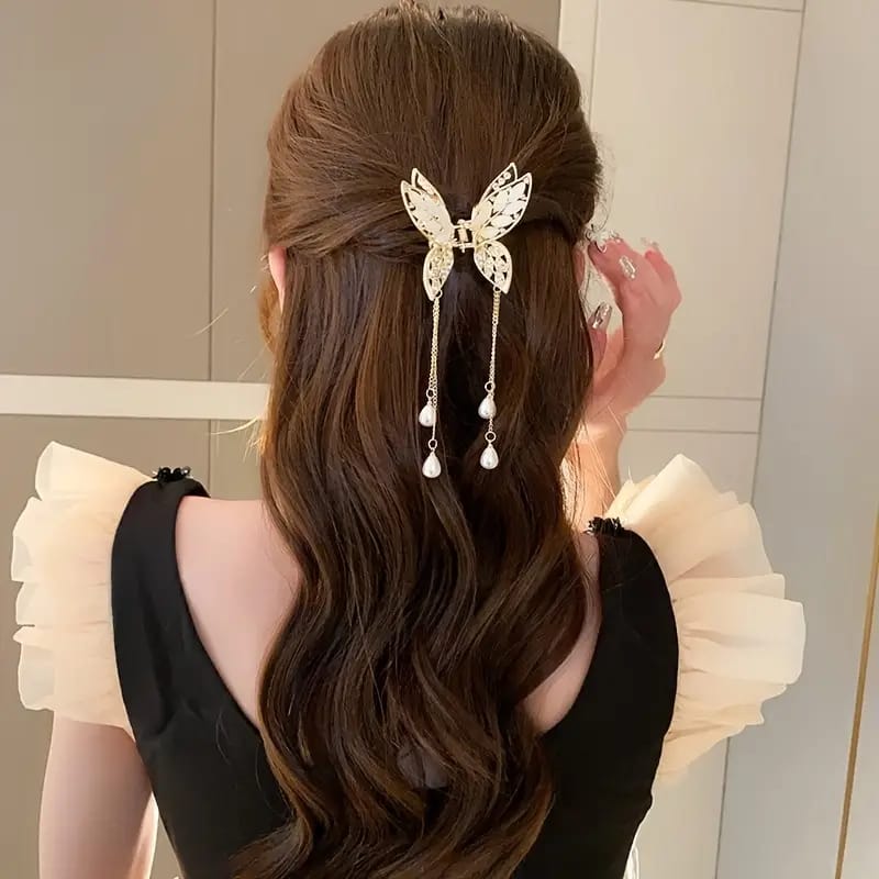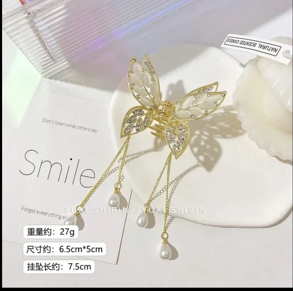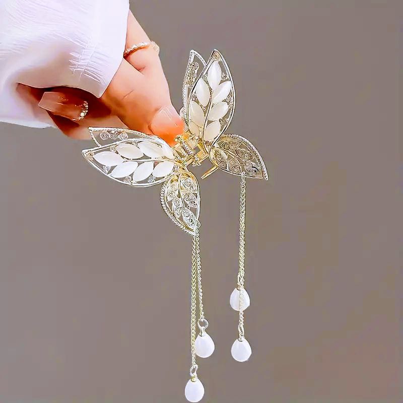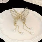 Home Jewellery New Fancy Gold Silver Butterfly Tassel Hair Claw Stone Clip
