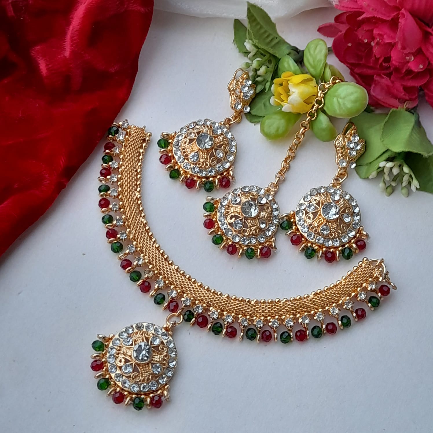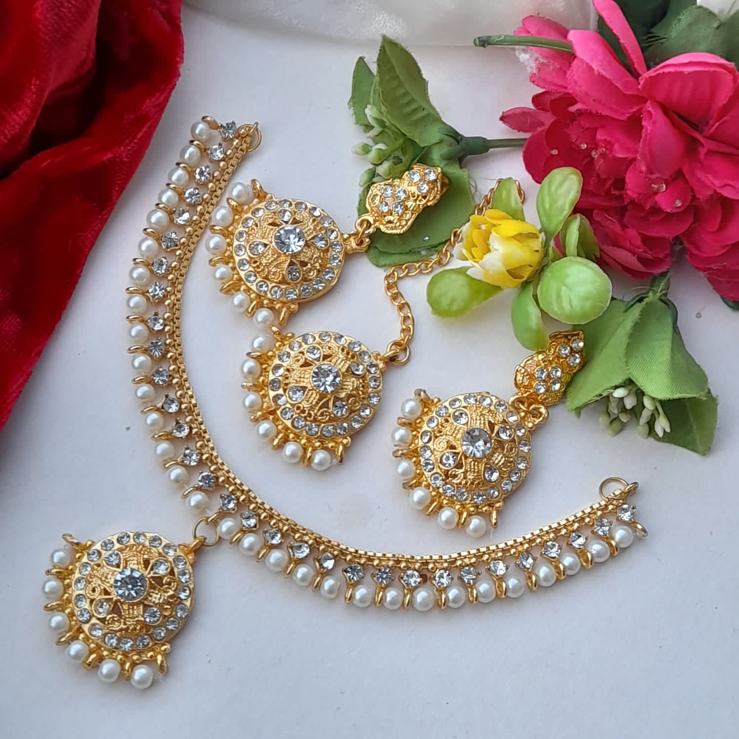 New Beautiful Kundan Gold Crystal Jhumki Earring Jewellery Set