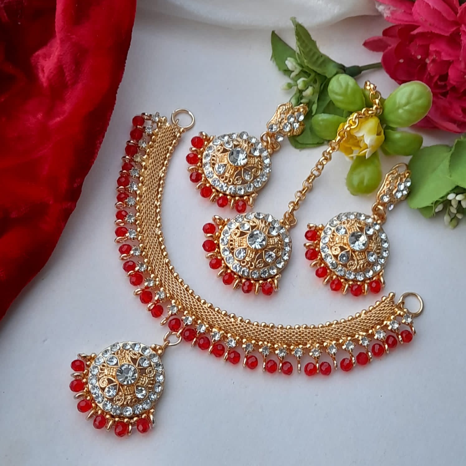Be the first to review “New Fancy Gold Earring Jhoomer Necklace Combo Jewellery Set” Cancel reply