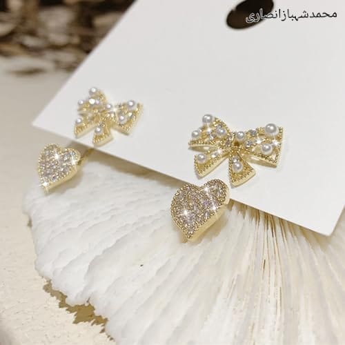 Home Jewellery New Fancy Gold Heart Bow Shape White Stone Earring Jewellery Set
