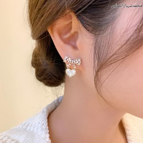 New Fancy Gold Heart Bow Shape White Stone Earring Jewellery Set