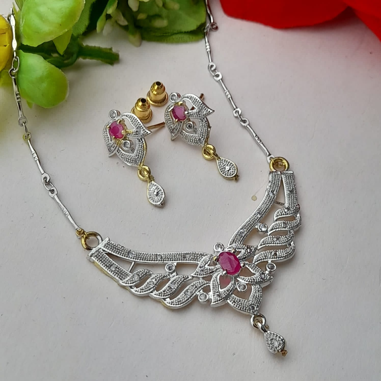 New Fancy White Gold Zircone Necklace Earring Jewellery Set